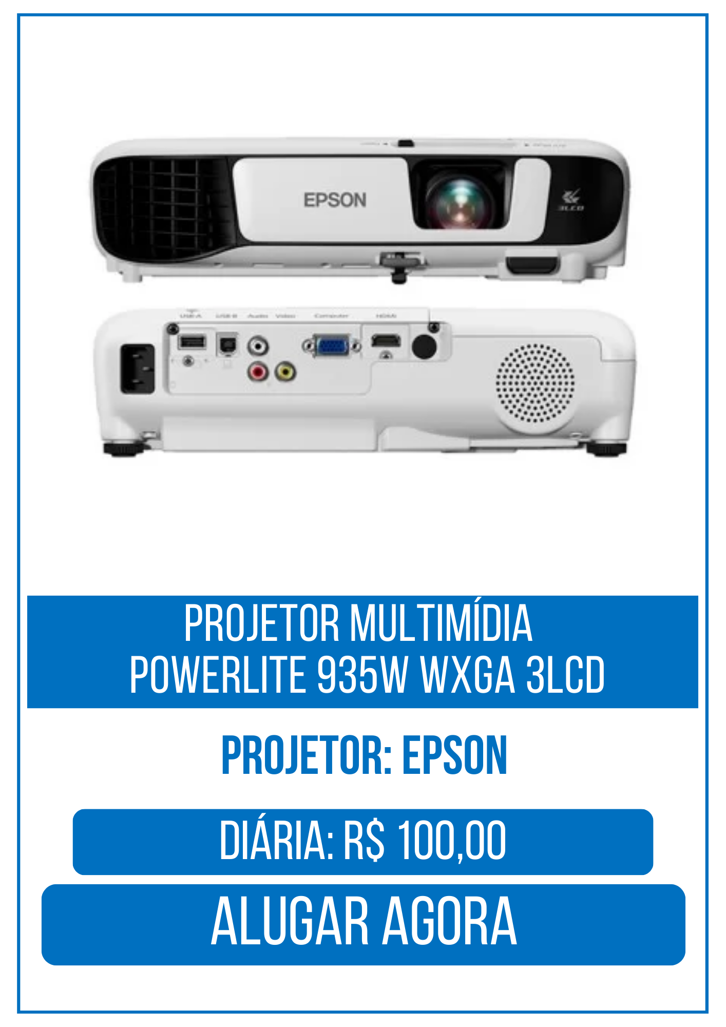 O PowerLite 935W Epson 3LCD oferece cores até 3x mais brilhantes que outros modelos da concorrência apresentando imagens naturais e vívidas. Com uma resolução WXGA widescreen, que conta com 3.700 lúmens de brilho em cor e 3.700 lúmens de brilho em branco. Possui um zoom óptico de 1.6x permitindo uma fácil instalação em quase qualquer lugar, ele também está equipado com conectividade HDMI e funções de áudio de grande qualidade.